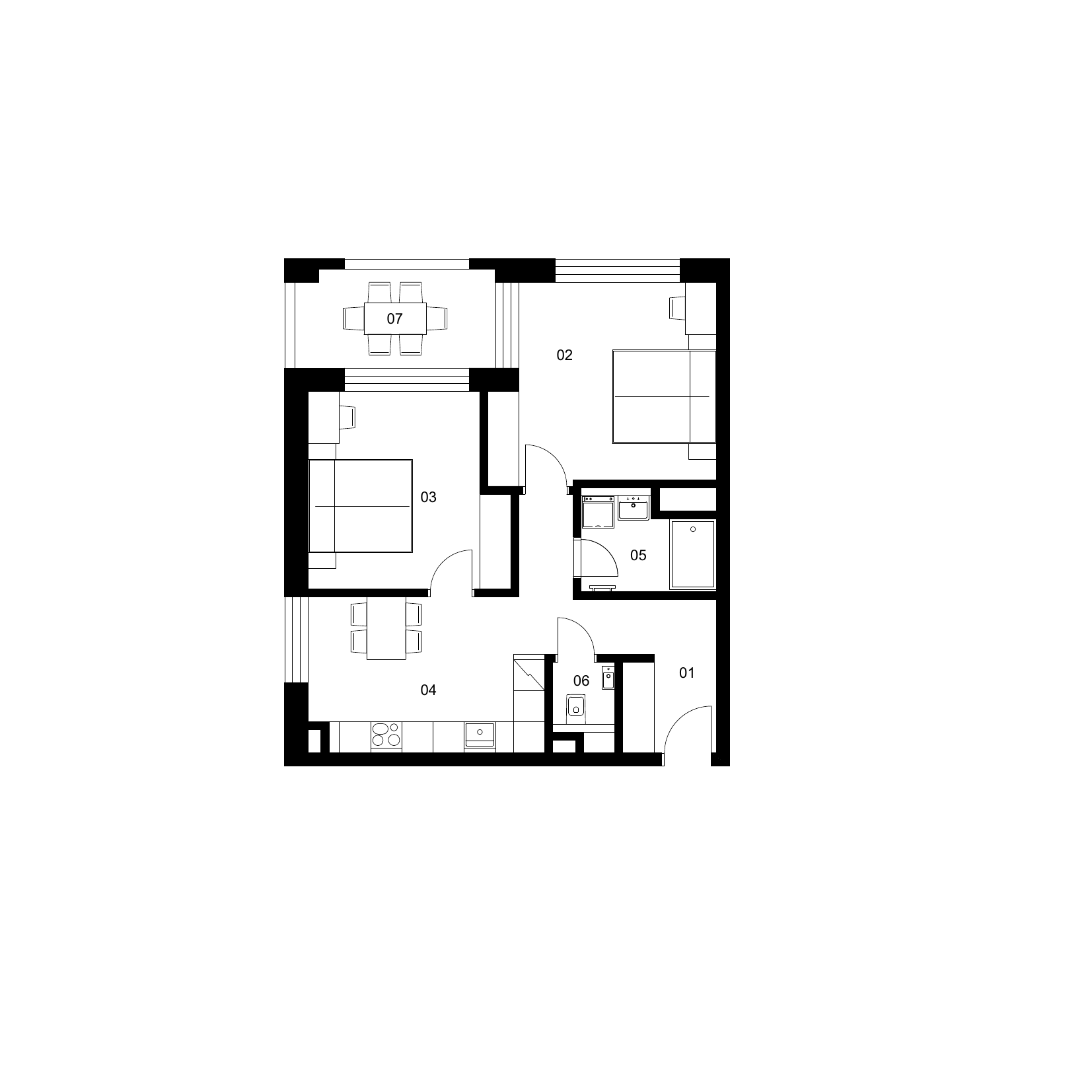 Varianty D 01 sú určené pre investorov, ktorí chcú prenajímať byty alebo poskytovať ubytovanie pre svojich zamestnancov. Dispozície Rental A a B sú navrhnuté pre študentov, zamestnancov firiem alebo na krátkodobé ubytovanie cez platformy ako Airbnb. Priestor je koncipovaný s ohľadom na požiadavky prenajímateľov a nájomcov, ktorí primárne požadujú komfortný nocľah a zázemie na prácu či štúdium. Okno v jedálni a v blízkosti kuchyne poskytuje prirodzenú ventiláciu a väčšiu svetelnosť, čo zvyšuje komfort bývania.