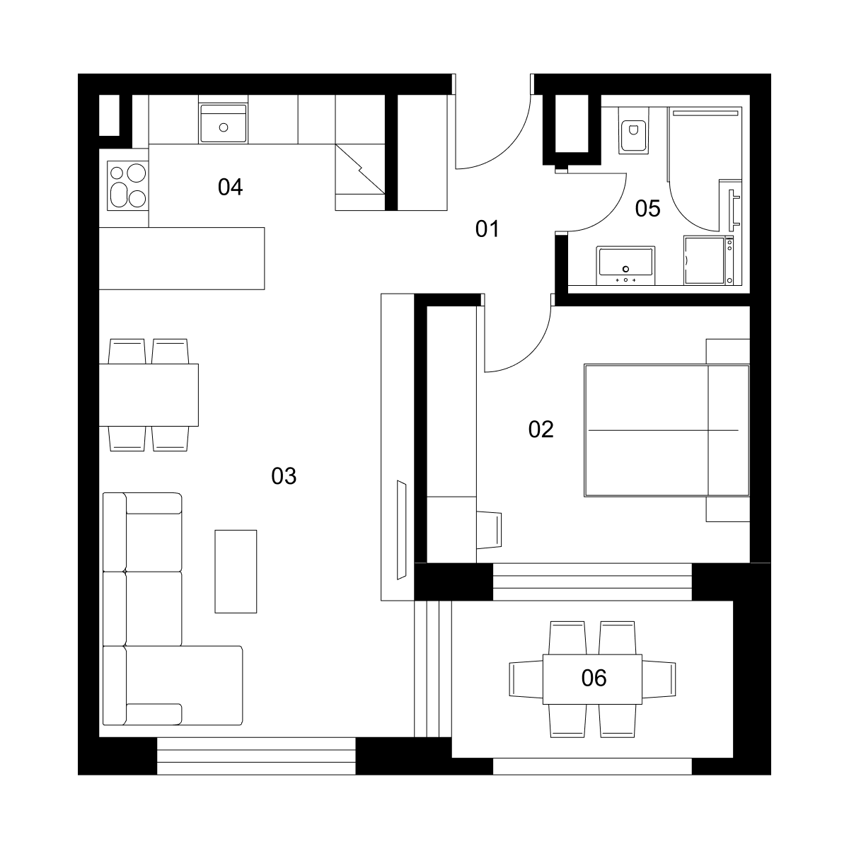 Variant A 01 ponúka kúpeľňu so sprchovacím kútom a praktické zádverie s úložným priestorom. Ideálny pre tých, ktorí preferujú rýchlu a efektívnu údržbu bytu.