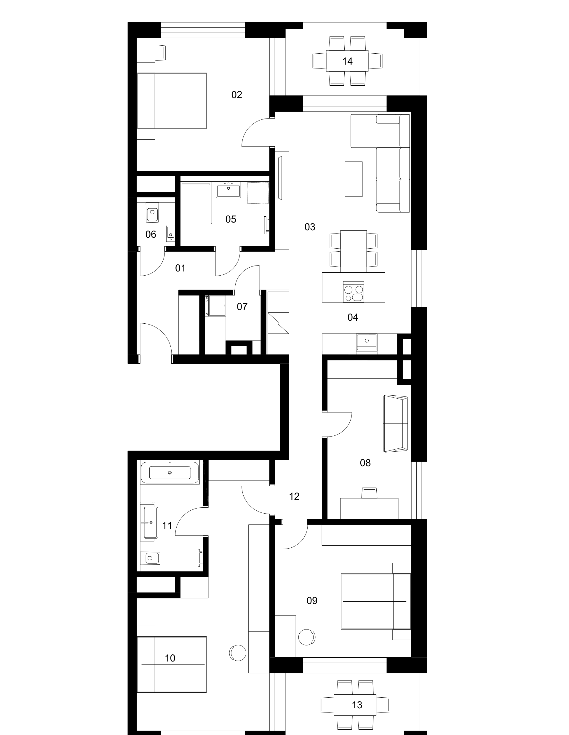Prepracovaná dispozícia variantu E 03 s dôrazom na komfort a exkluzivitu ponúka dve kúpeľne s vaňou a sprchovacím kútom. Zažite prémiovosť hotelovej Executive Suite priamo doma s hlavnou spálňou, vlastným balkónom, privátnou kúpeľňou a šatníkovou miestnosťou. Kvalitu zázemia dopĺňa pracovňa. Tento multifunkčný priestor je pripravený splniť všetky vaše požiadavky a prispôsobiť sa vášmu životnému štýlu, či už pracujete z domu, alebo potrebujete miesto na svoje koníčky a záujmy.
